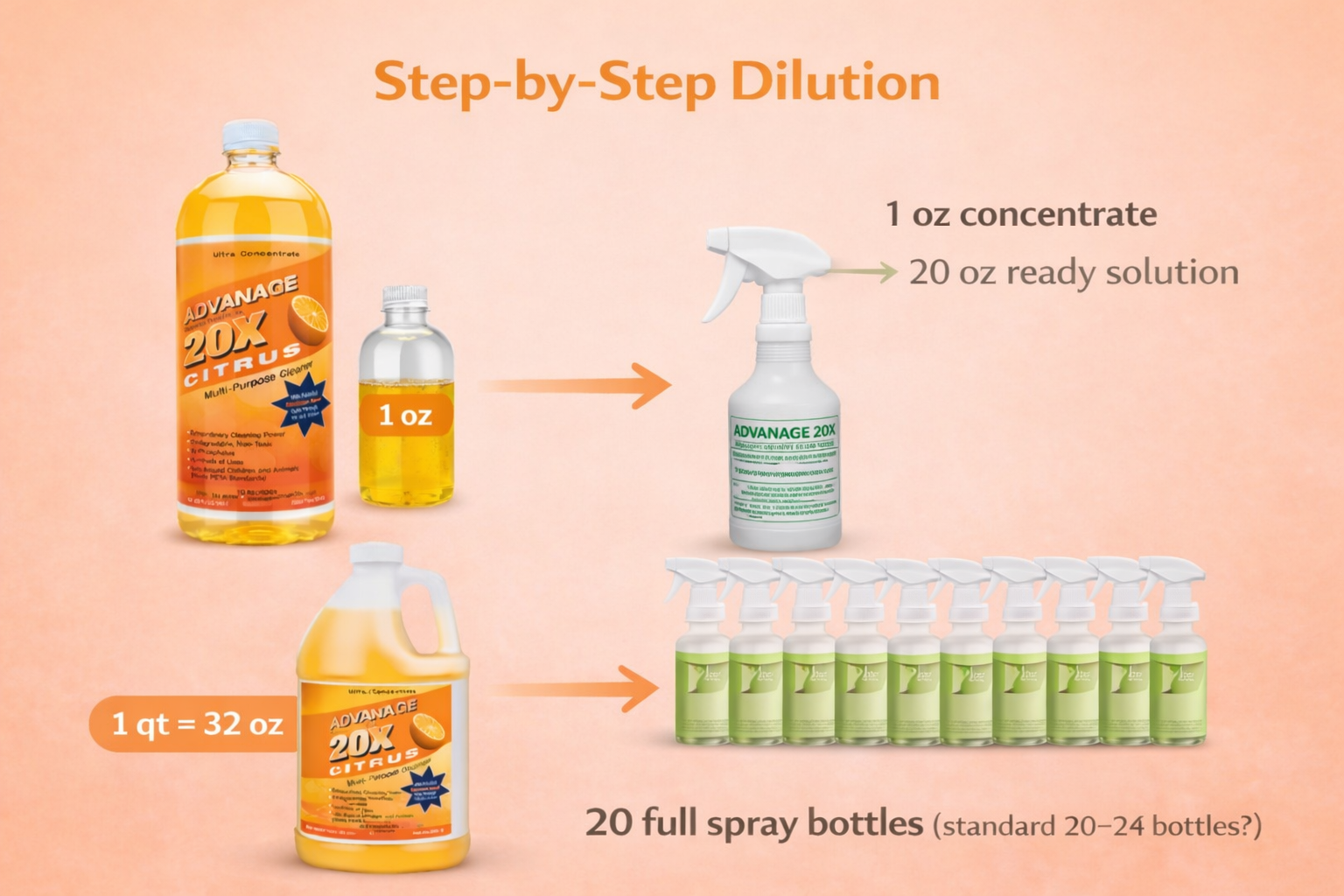 With a concentrated formula like ADVANAGE 20X, you’re creating those same 20 bottles from one quart — at a fraction of the cost per use.