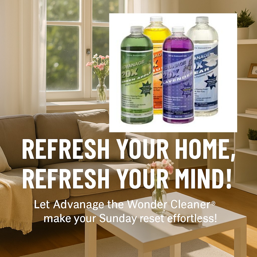 That’s why Advanage the Wonder Cleaner® is the perfect partner for your Sunday Refresh Routine. Whether you’re tackling the kitchen, refreshing the bathroom, or wiping down surfaces throughout your home, Advanage helps you clean smarter, not harder. 🌿
